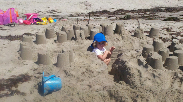 Max, Ben and I made the trek and when back to the beach, the water never felt nicer. Big rollers coming in made for fun surfing and since the diapers were now back, Samey could go "number 2". Good times, eh?